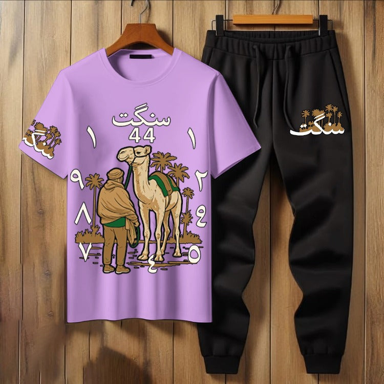 Purple Camel and Desert Printed T-Shirt and Jogger Set